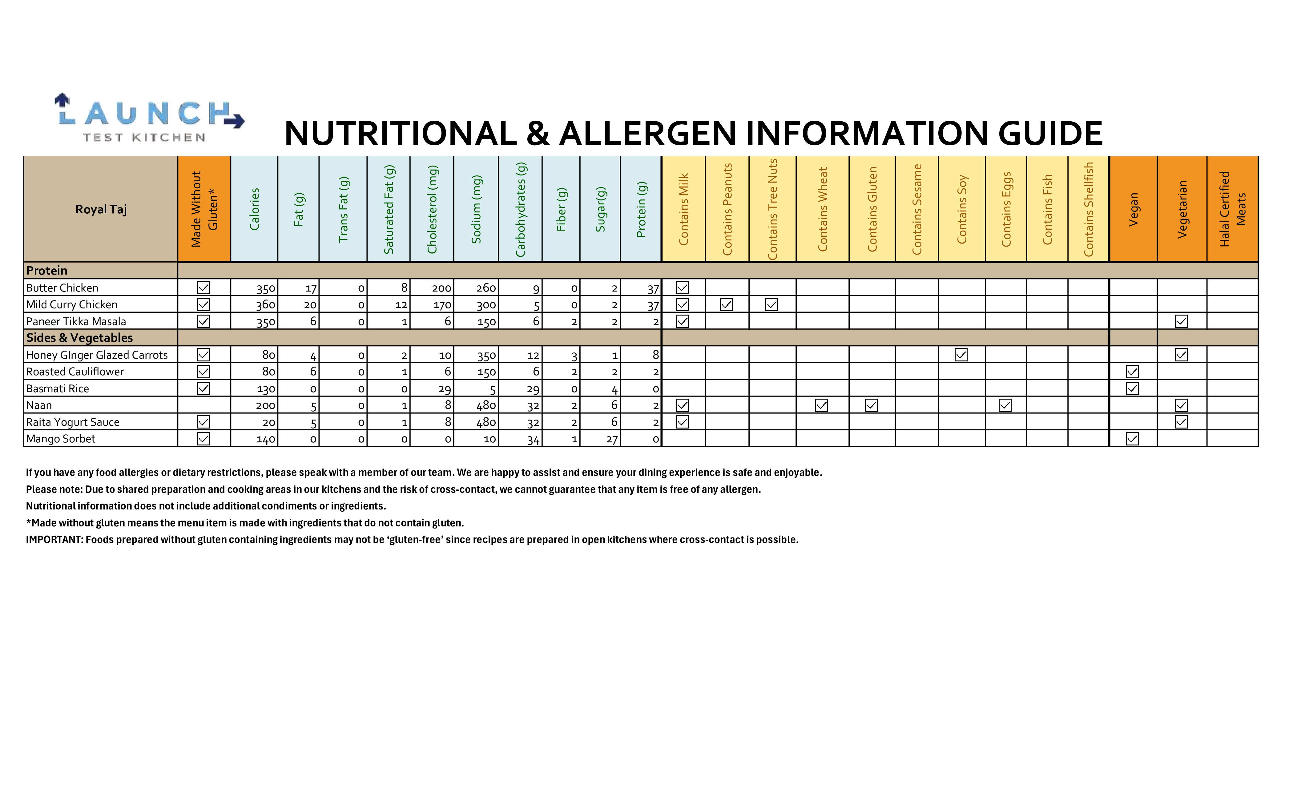 View full menu nutrition information and allergen list: